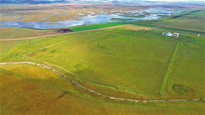 航拍镜头下的黑山头古城遗址。黑山头古城遗址位于呼伦贝尔市额尔古纳市黑山头镇西北约10公里的额尔古纳河河谷平原上,始建于辽代,是内蒙古东部地区现存时代较早、保存完好、规模较大的重要城址之一,为第五批全国重点文物保护单位。记者 王智华摄