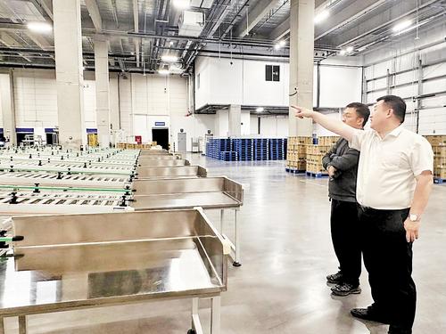 9月23日,中行廊坊临空经济区支行客户经理(右)在企业医药物流中心走访调研。 于洋摄