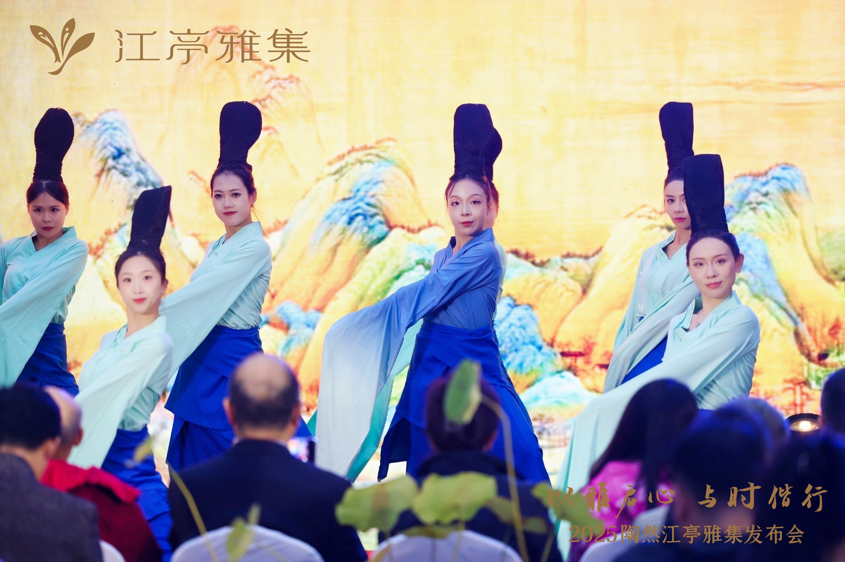 活动突破传统线下模式,借助数字技术实现文化传播升级:故宫博物院第六任院长单霁翔通过视频寄语,远程分享文化遗产保护与活化见解,让优质文化资源突破空间限制触达现场;江亭雅集LOGO发布环节,品牌设计师贺冰淞以视频形式解析设计理念,将三尾游鱼象征的“悠游万象”、古琴曲《猗兰操》蕴含的“幽兰之姿”等抽象内涵,通过可视化画面直观呈现,让传统文化符号更易被理解与感知。