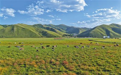 兴安盟科右前旗的乌兰毛都草原上,牧群在秋日草原上觅食。乌兰毛都草原总面积8000多平方公里,是世界上少有的无污染、无鼠害、无沙化草原。依托得天独厚的自然资源优势,科右前旗累计建设69个牲畜改良站点,通过引导养殖户种植优质饲草,提升优质营养物摄入量来提高家畜生产指标,乌兰毛都草原每年牛羊存栏达到近百万头(只),实现生态保护与产业发展双赢。记者 王磊摄