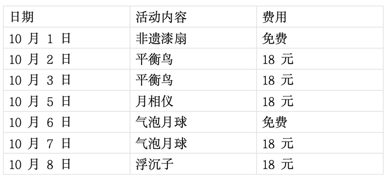 10月1日—10月5日每日均有特色活动,场馆正常开放