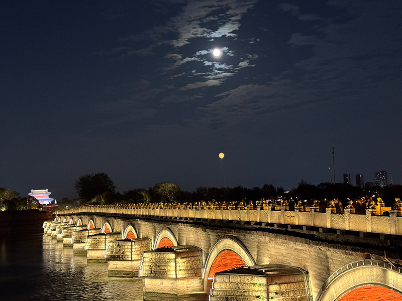 “有幸亲身体会‘卢沟晓月’盛景,这真是‘有生之年系列’!今天在宛平城,我度过了一个难忘的中秋节。”游客李女士说,行走在宛平城,与“宛平县令”互动打卡,在古城墙上赏月,走在历史里,也活在当下的热闹里,真切地感受到了“文化的传递”。